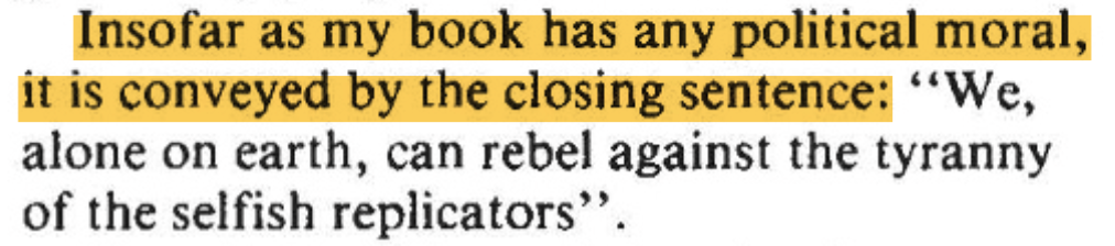 Needless to say, Dawkins is no Nazi, so how then does he justify the political implications of his book?
