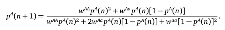 But in these huge equations, fitness is interpreted simply as the number of offspring that an individual produces. Also for some really silly reason, w became the letter we use to represent fitness. Don’t ask me why, if someone does then please let me know.